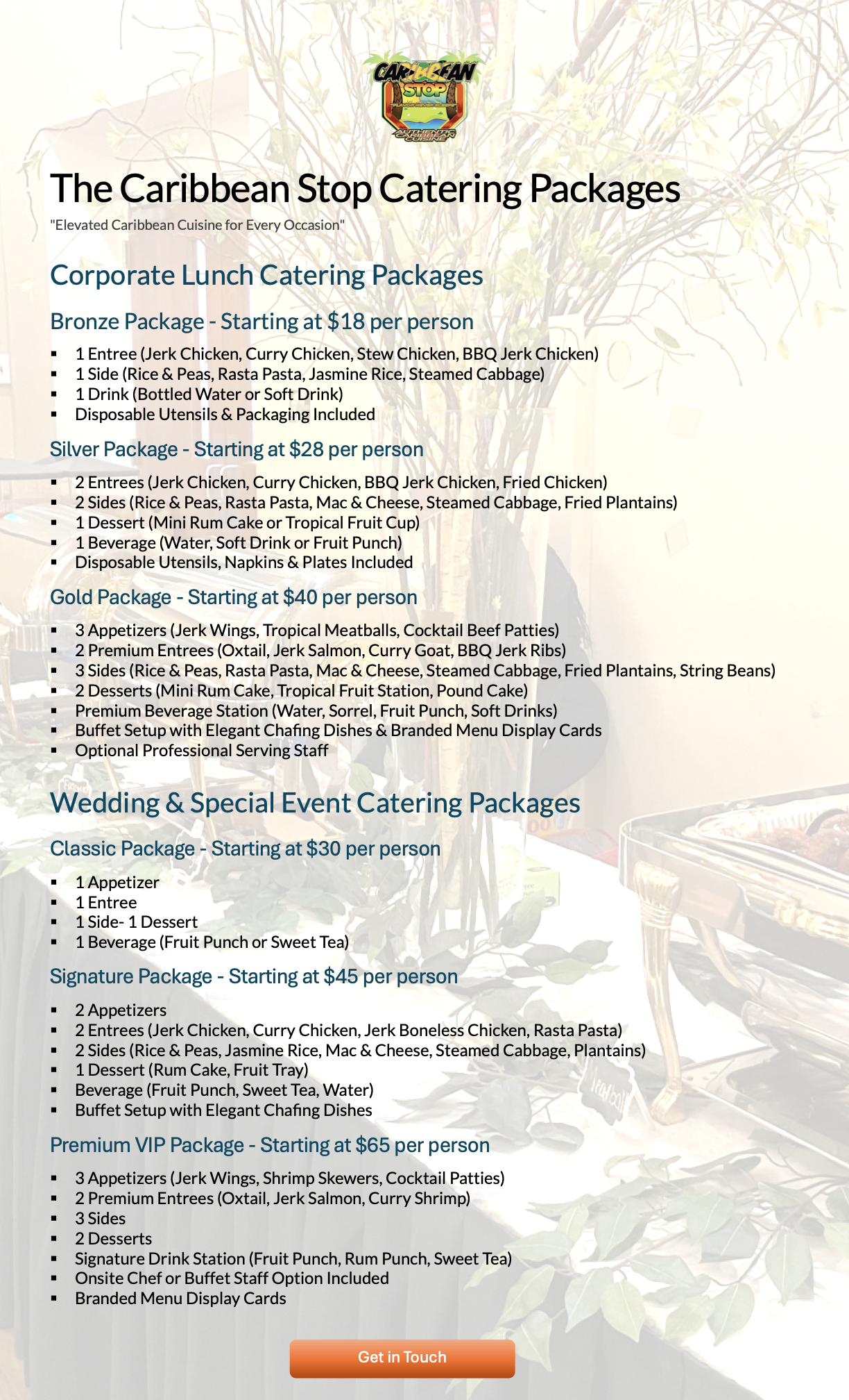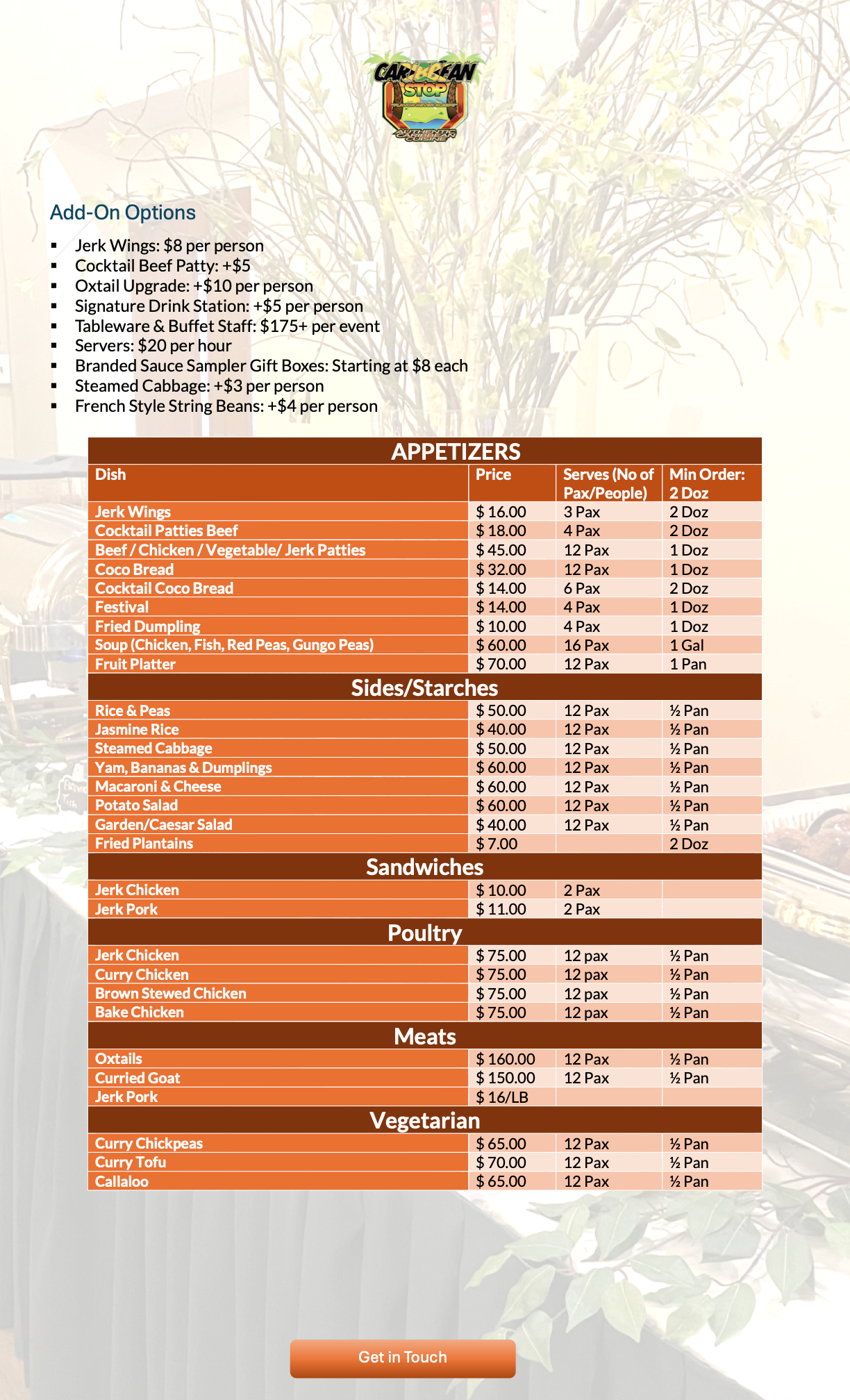 The Catering MENU